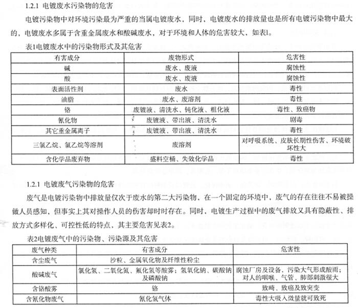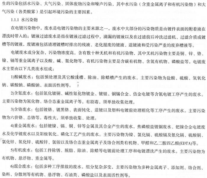 一般的電鍍生產工藝由前處理、電鍍和后處理工藝三部分組成,每個工藝一定程度上都是污染物產生,產